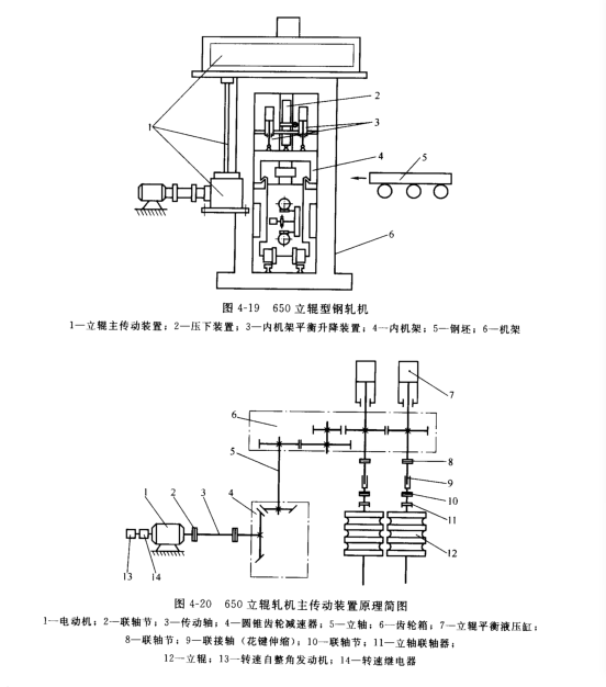 650立棍型鋼軋機(jī)如圖4-19所示,主要由機(jī)架,立棍主傳動(dòng)裝置,壓下裝置,內(nèi)機(jī)架,內(nèi)機(jī)架平衡升降專職及換輥裝置等組成。