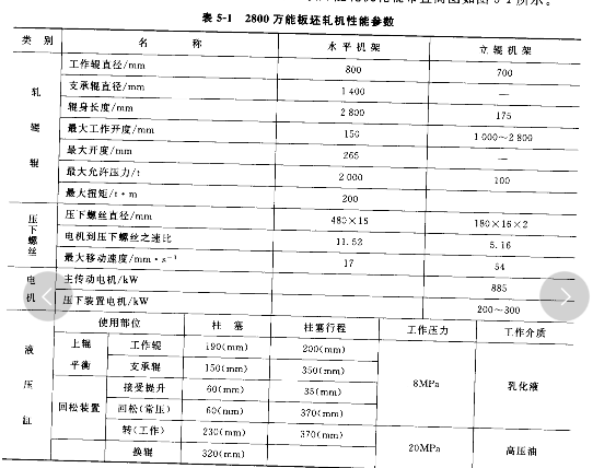 ****軋機(jī)是由水平配置的二輾(或四輥) 和一對立輥共同構(gòu)成的軋機(jī)。用于板坯初軋機(jī)或熱軋板帶開坯機(jī)。普通型 2800 ****板坯軋機(jī)設(shè)備性能見表 5-1,可軋出厚度為 19~30mm,寬度為 600~1 500mm 的帶鋼半成品。該****軋機(jī)軋輾輥布置簡圖如圖 5-1 所示。